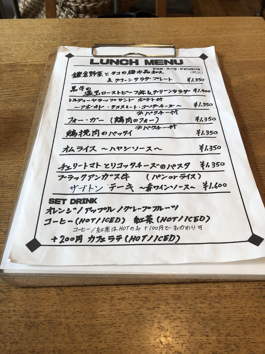 メニューは週替わりです。ランチセットには、スープ・サラダ・ドリンクがつきます。